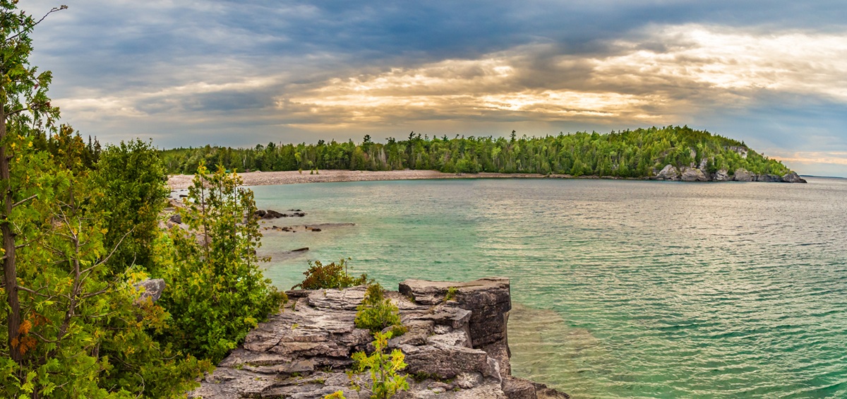 Direction la côte sud de l’île pour prendre le traversier Chi-Cheemaun qui vous conduira de South Baymouth à Tobermory. Une fois débarqués, voici le magnifique parc national de la Péninsule-Bruce. Vous serez éblouis par ses eaux turquoise surplombées par des falaises spectaculaires. Après cette visite immanquable, reprenez la route pour rallier Owen Sound.